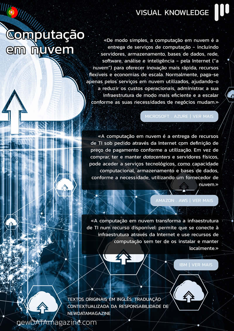 No nossa secção VISUAL KNOWLEDGE publicada na newDATAmagazine N.º02, destacamos 3 definições de Cloud Computing que passamos a partilhar: