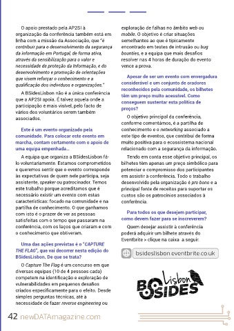 A equipa que organiza a BSidesLisbon fá- Tendo em conta esse objetivo principal, os