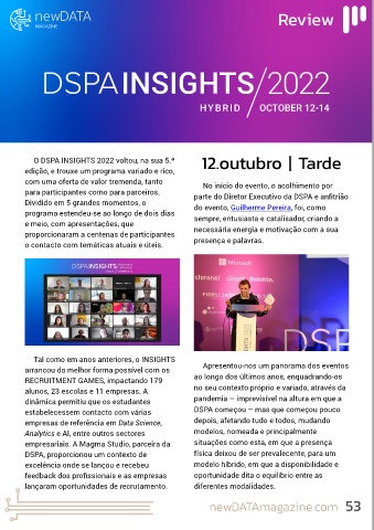 O DSPA INSIGHTS 2022 voltou, na sua 5.ª 12.outubro | Tarde